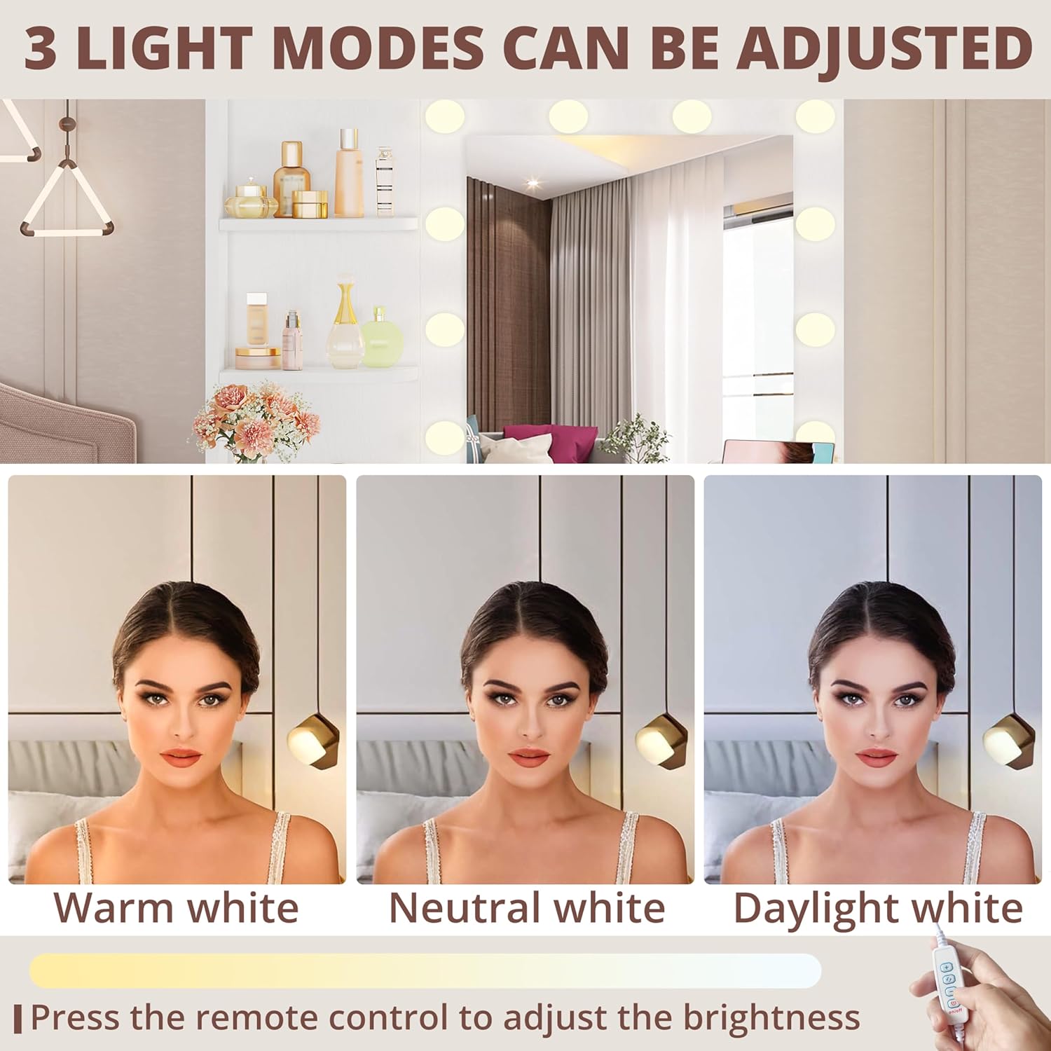 IRONCK Vanity Desk with Mirror and Lights, Small Makeup Vanity Table with 5 Drawers, Power Outlet, and Vanity Stool, 3 Lighting Colors, Dressing Table for Women Girls Bedroom, White