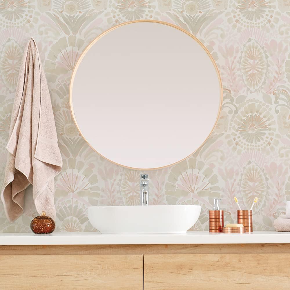 Tempaper Pink Bohemia Damask Removable Peel and Stick Boho Wallpaper, 20.5 in X 16.5 ft, Made in the USA