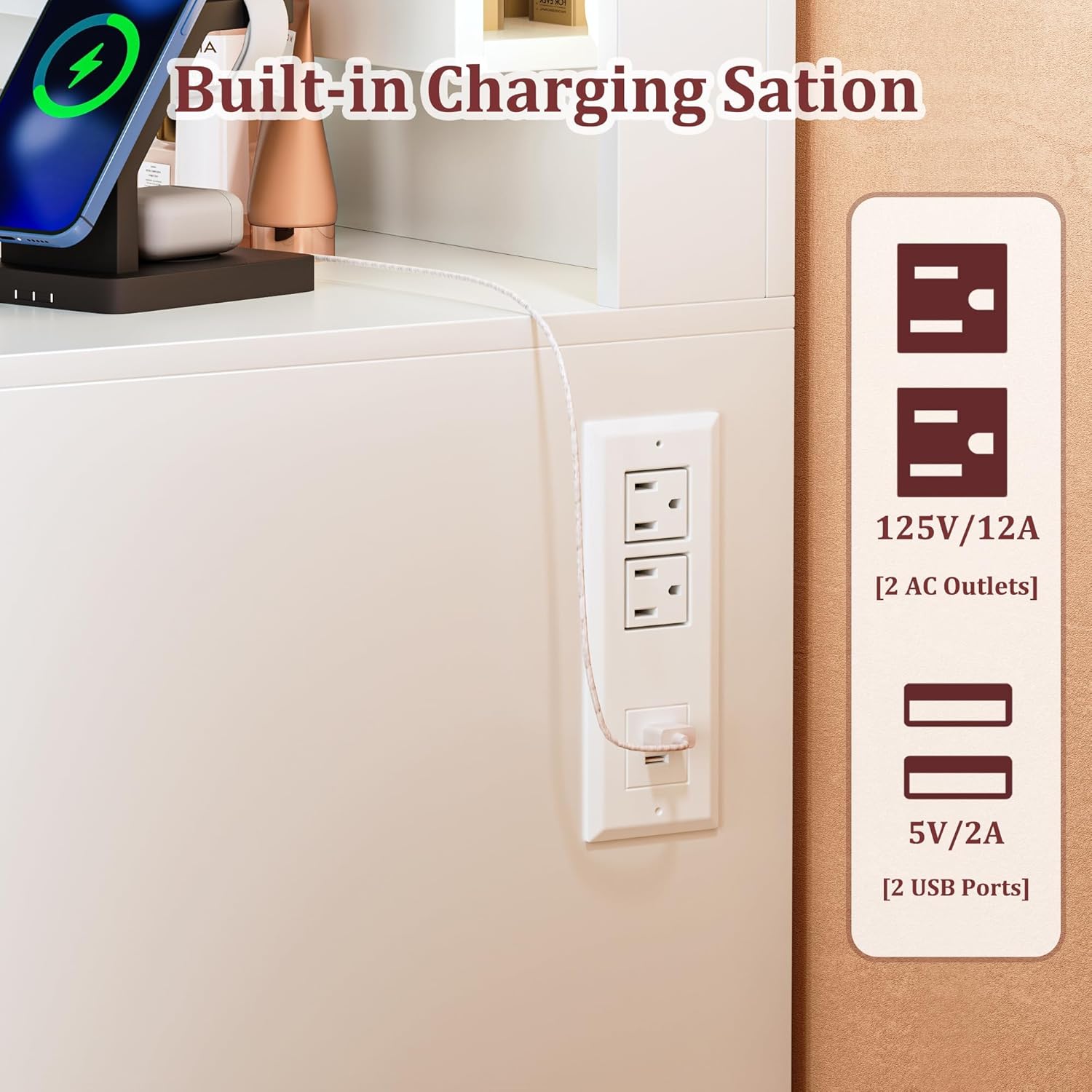 Vanity Desk with Large Mirror and Lights, 45.3in Makeup Vanity with Power Outlet 9 Drawers & Storage, 3 Lighting Color Adjustable, White Vanity Desk for Bedroom